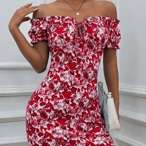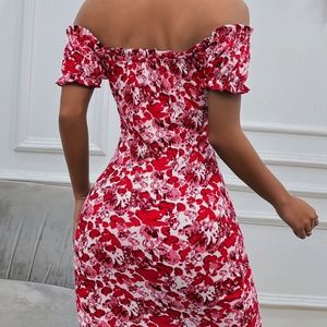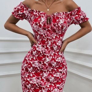 Boho Vibrant Floral Print Off Shoulder Bodycon Dress
