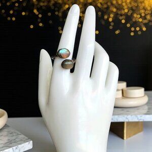 Dazzle with earthy magic and timeless charm πβ¨ This handcrafted boho chic statement ring features two natural Labradorite stones that shimmer with mesmerizing flashes of blue, green, and gold. Set on a rustic copper-finished open band, it wraps gently around your finger with adjustable comfort β a one-of-a-kind piece perfect for lovers of crystals, artisan style, and vintage-inspired elegance!