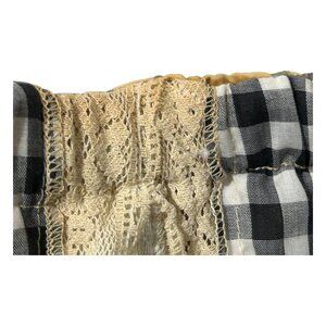 This skirt embodies a vintage bohemian appeal with its patchwork design, intricate lace accents, and gingham lining. A timelessly vintage crafted in USA statement piece.