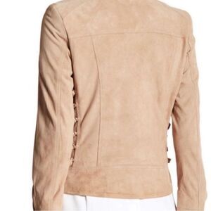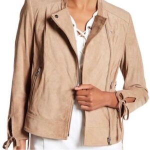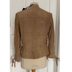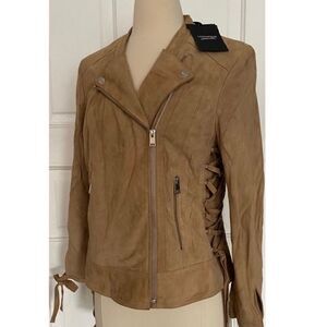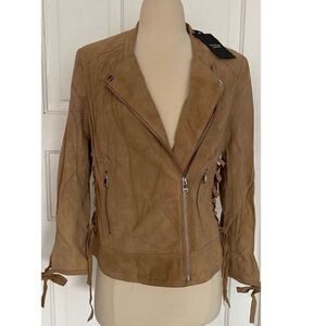 Boho Western Brand NWT Lamarque Suede Leather Tan Lace Up Side Biker Moto Jacket