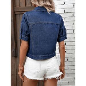 Stylish Boho Western Single-Breasted Short Sleeve Fitted Denim Jacket