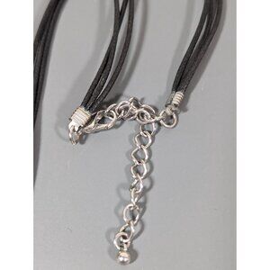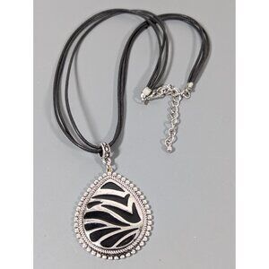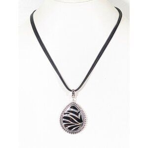 Boho Western Tribal Black Enamel Zebra Stripe Pendant Multi Cord Necklace 22"