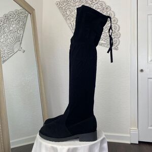 ༓ black faux suede over the knee boots
