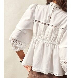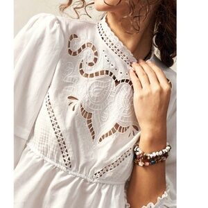 Boho White Lace 3/4 Sleeve Flared Hem Top