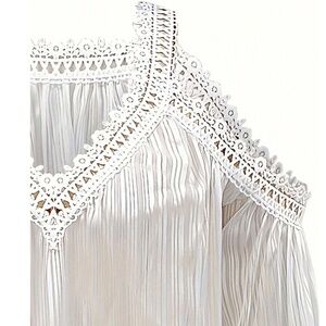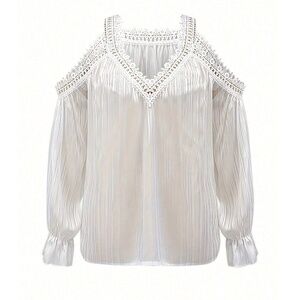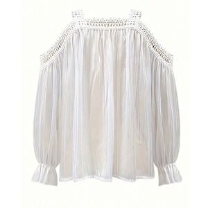 Boho White Lace Cold Shoulder Striped Loose Fit Blouse