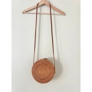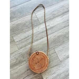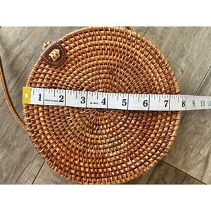 Boho Wicker Straw Circle Purse Crossbody Bag Fabric Lined Snap Closure Summer