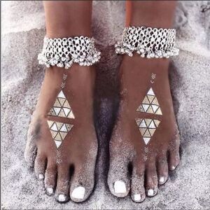 Boho Wide Silver Tassel Bells Anklets Ankle Jewelry - NEW