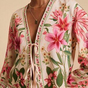 Boho Womens Floral Print Long Sleeve tie detailed Blouse Shirt