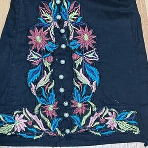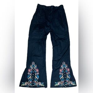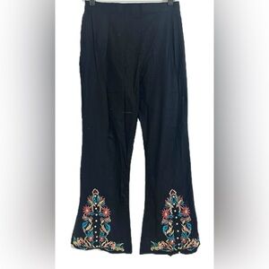 Boho Womens Pants M Black Flare Leg Embroidered Pearl Detail Summer