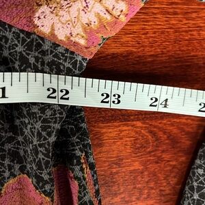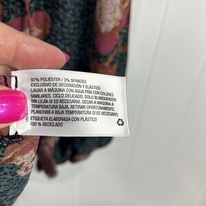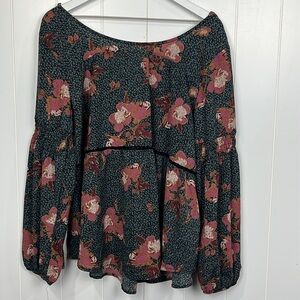 Boho Womens Top Green Mauve Floral Print Balloon Sleeves Crochet Details Tiers Pullover Scoop Neck Elegant Flowy Versatile EUC