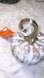 Natural wood pumpkin with heavy metal stem
