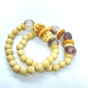 Boho Wood and Natural Beads Stretch Bracelet Pair