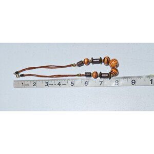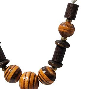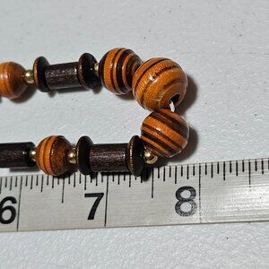 Boho Wooden Beaded Necklace Striped Orange Brown Beads Retro 60s 70s Jewelry