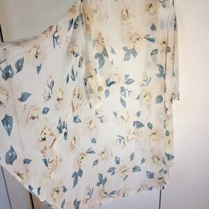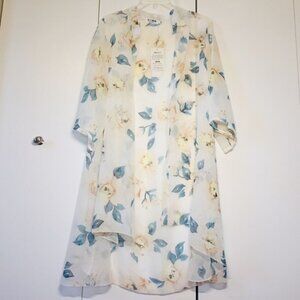 Fashion Line Boho style Yellow/Creme Green Floral Printed White Semi sheer long Duster Kimono.