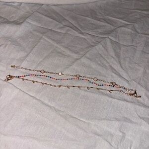 Elegant boho ankle bracket stack. Each anklet has adjustable sizers at the end.