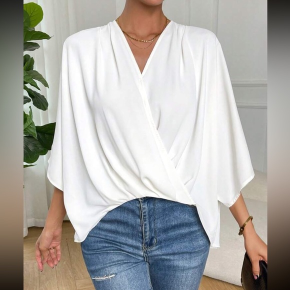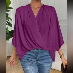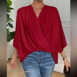 Boho batwing sleeve wrap blouse