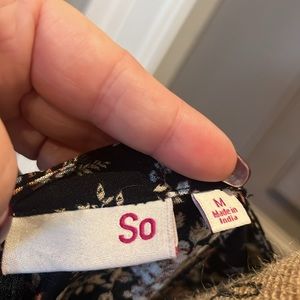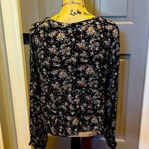 This boho flowered blouse with a lace up from and flare at the bottom is from Kohls. This blouse was never worn but does not have a tag.