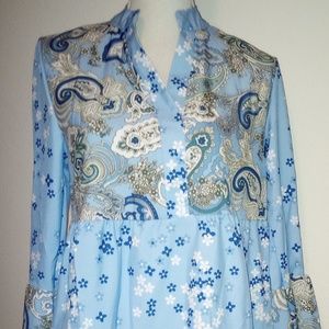 This is a brand new and beautiful light blue boho dress. Medium size; knee length .Great for summer time, you will love it!