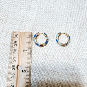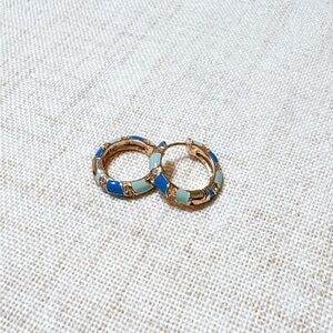 Blue enamel diamond decor hoop earrings in gold tone hardware