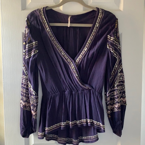XS dark blue purple beading free people tshirt