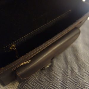 Super cute, boho crossbody bag. Purchased in New Mexico, authentic handmade leather bag. Hardshell and sturdy, buckle type closure. One main compartment with smaller outer pocket. A fun addition to your summer wardrobe!
