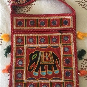 Beautiful crossbody/shoulder bag with embroidered elephant and mirror work.