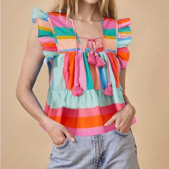 Nwot Size large. Runs roomy and flowy! Such a fun blouse that could easily transition into early fall!