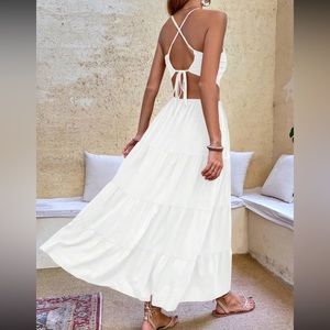 Boho crisscross tie open back cutout maxi dress