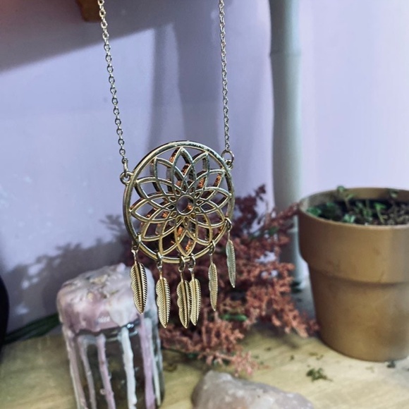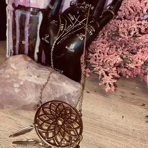 gold boho aesthetic dreamcatcher necklace. super cute to pair with a sundress or sweater