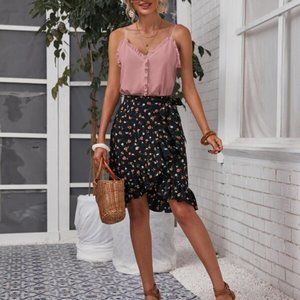 Boho dusty pink frill trim V neck cami top