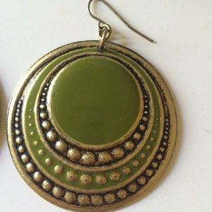 Gold and green boho earrings! Worn once! Great condition! Gold mixed with a dark bronze & green! Price negotiable!