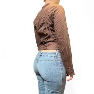Boho fairycore embellished beaded and laced brown button up womens sz Med