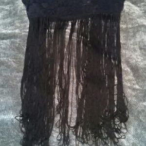 Black lace and fringe bustier top great with high waisted jeans, shirt or shorts. Bought on a road trip to Cali and is too big for me! Size 34b worn once