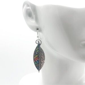 Boho festival silver tone and multicolored fish / leaf design fashion earrings