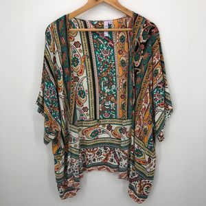 Boho graphic lightweight beach coverup kimono. Size small. 100% rayon.