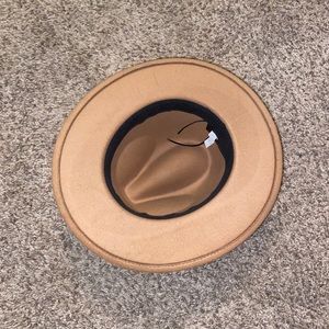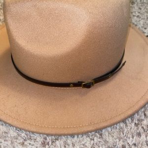 Taupe tan colored fedora style sun hat. Pairs perfect with a boho outfit.