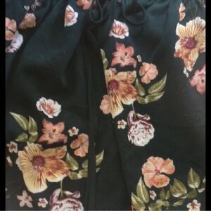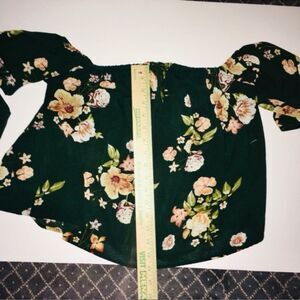 🍭 Boho inTu Green Floral Print Off The Shoulder Crop Top Size Small EUC