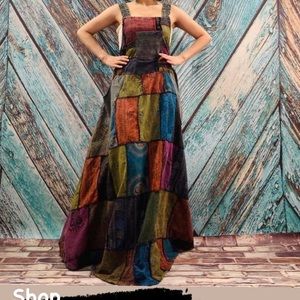Binsa Pinafore Tribal Patchwork Overall Maxi Festival Dress Cotton Handmade Boho Nepalese Baggy Hippy Sleeveless One Size