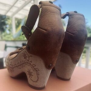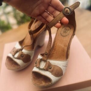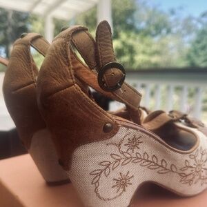 Boho linnen embroidered wedges Ariat Vista - beige neutral sandals