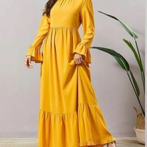 Mustard boho tiered dress, long sleeve, XL, polyester/cotton blend, never worn