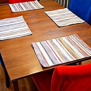 Colorful boho loomed placemats. Set of 4. Cotton blend. Edges aren't perfectly straight, see photo, but overall in EUC and smoke free.