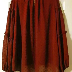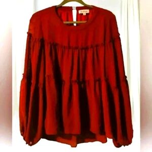 Boho maroon tiered flowy thin blouse balloon sleeves lined Prairie size Large