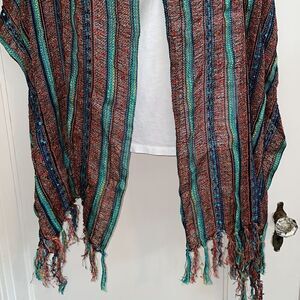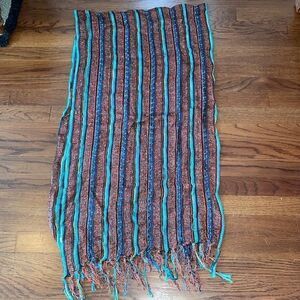 Boho multi colored metallic thread stripe large scarf or wrap with fringe