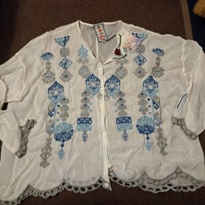 Blusa sin hombros boho • 100% rayon • Talla M • $7