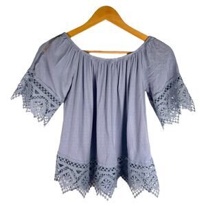 Boho off-shoulder blouse w/ crochet lace trim – S blue