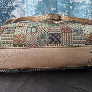 Add a touch of vintage charm and artisan craftsmanship to your look with this SAS (San Antonio Shoemakers) tapestry shoulder bag. Beautifully woven in a multi-color patchwork pattern with genuine leather trim and gold-tone hardware, this bag combines comfort, quality, and timeless style.