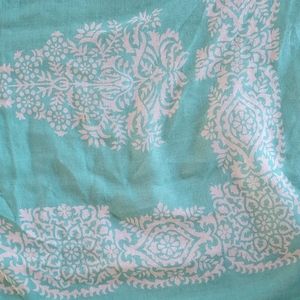 teal scarf with white bohemian pattern. very soft to the touch. looking for a good home, make me an offer!