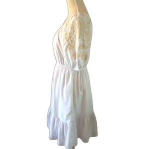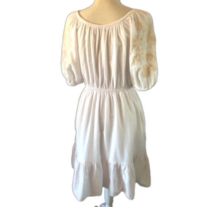 Boho peasant prairie dress embroidered puffed sleeves size XS pastel pink