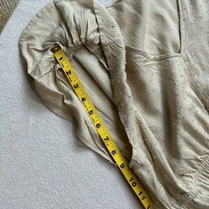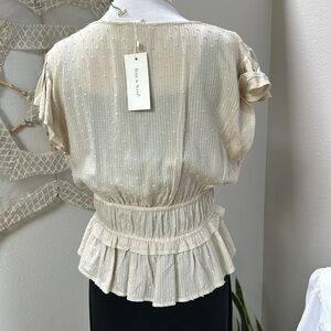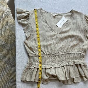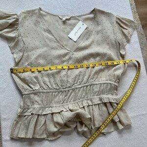 Boho ruffle cap sleeve v neck top with Swiss dot detail SZ L-XL (Bin3)