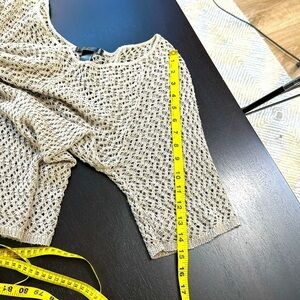 Great condition. V neck. Longer tunic length. Flares out a little gradually from waist. Could wear with almost anything including a swimsuit coverup. Size tag is not readable although measurements look to be a medium. Please confirm measurements approximate laying flat in photos as Poshmark does not accept returns for fit issues. Please scroll to see all six photos provided.